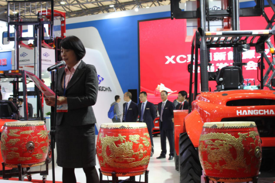 上午10时,在媒体、客户代表、经销商代表以及众多现场观众的见证下,中国工程机械工业协会工业车辆分会张洁秘书长及杭叉集团董事会秘书、营销总监、总工程师、副总工程师等五位领导共同为XC系列系能源叉车和杭叉-C系列锂电池进行了剪彩、揭幕。张洁秘书长在致辞中表示:杭叉XC系列新能源叉车精彩亮相,产品从设计、性能、外观各方面既彰显了杭叉集团精心打造的优势,同时也体现了杭叉集团作为上市公司努力践行低碳绿色环保生活的社会责任感。