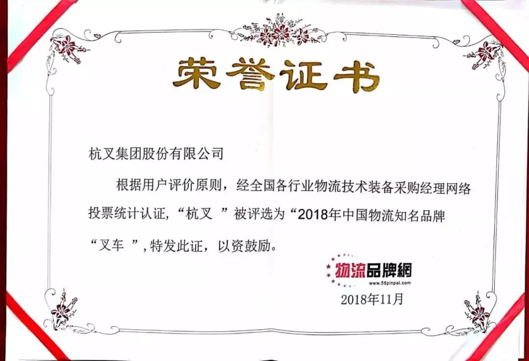 上周,杭叉集团有限公司获得了物流品牌网颁发的“2018年中国物流知名品牌叉车”奖项。