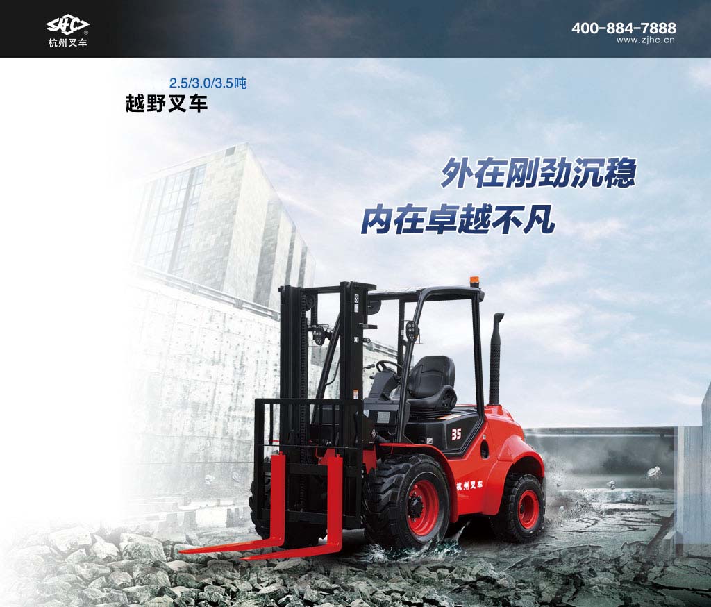 ● 2.5-3.5t两驱越野叉车在XF系列内燃叉车的基础上开发而成,采用多项新技术设计,通过技术创新,全面提升整车可靠性、安全性、外观、舒适性、易维护等性能。整车具备以下特点: