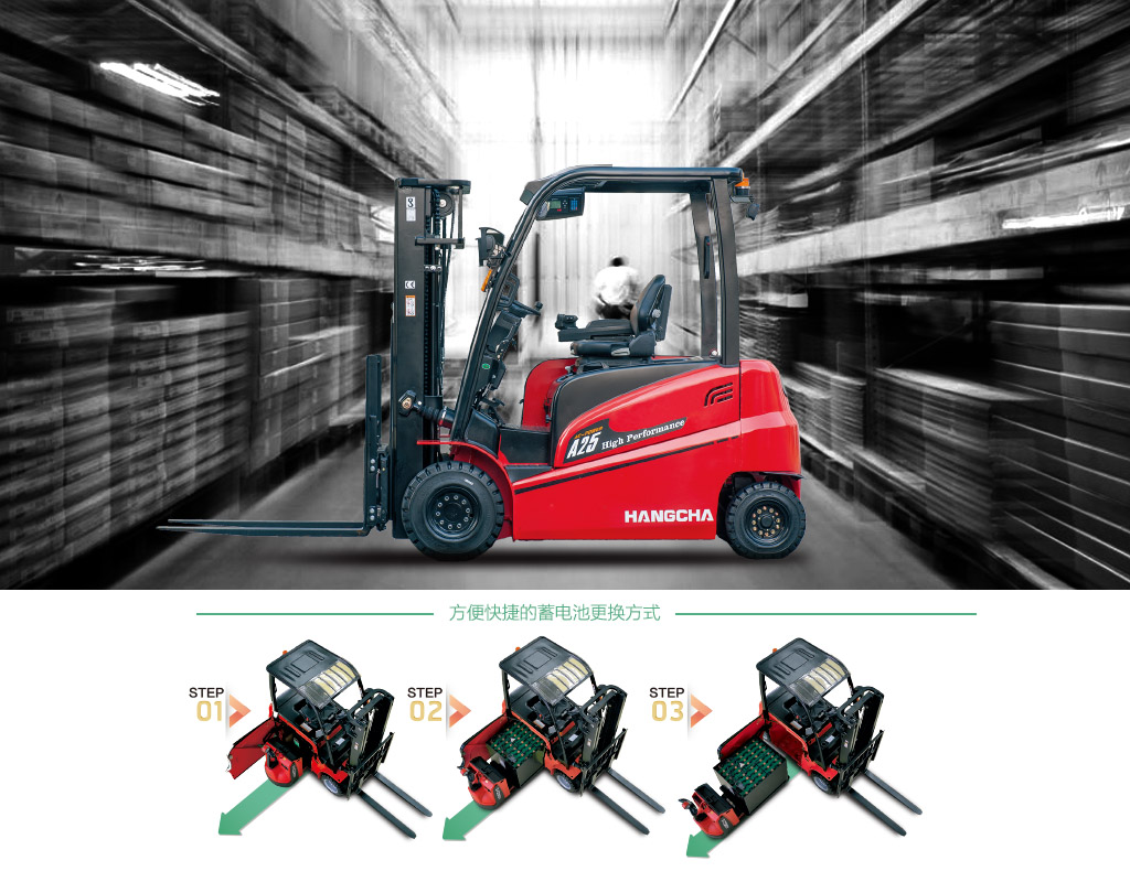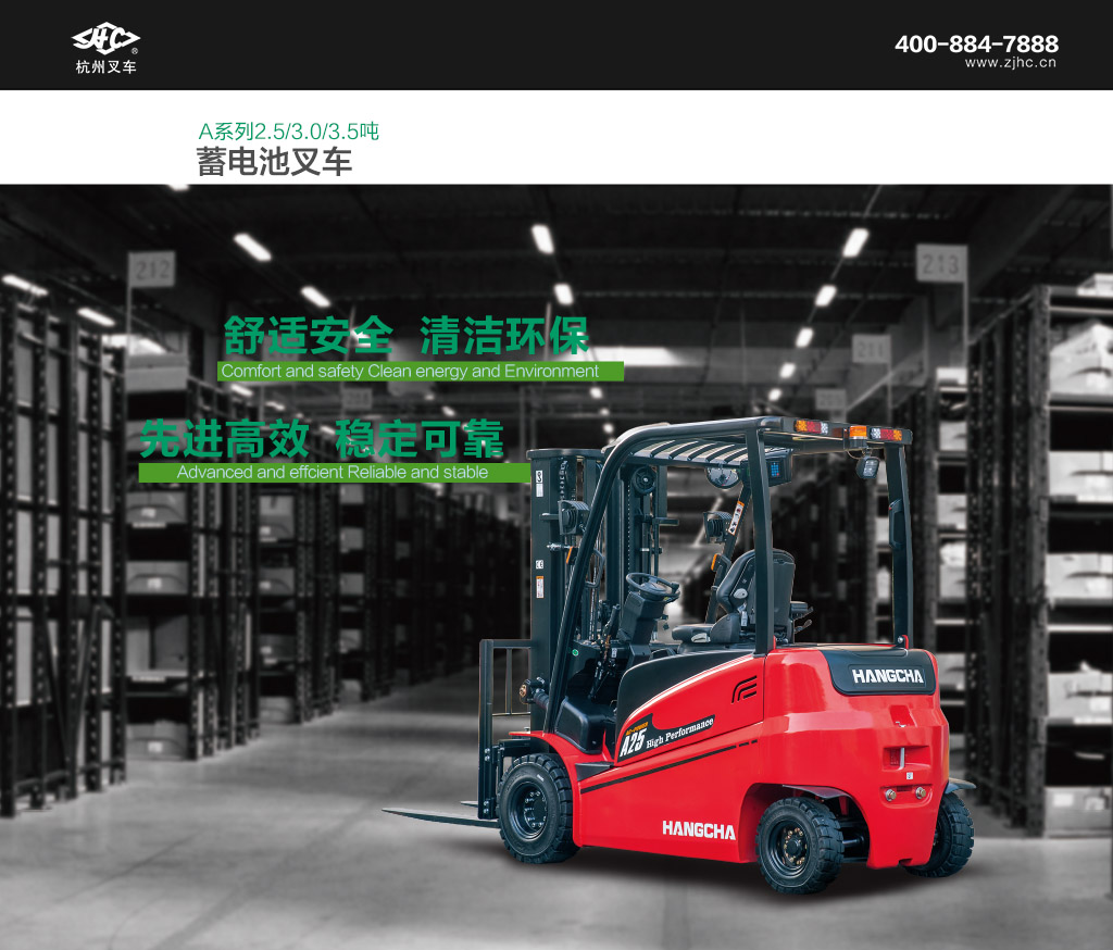 ● 新的A系列高性能电叉,涵盖2.5/3.0/3.5t三种吨位段,是杭叉2014年重点推出的一款产品。它是杭叉普通性能版本电叉1.5-3.5t的有效延伸,主要满足客户效率优先的需求,追求高起升速度,高行驶速度,大容量蓄电池,优良人机工程以及易操作性、安全性。