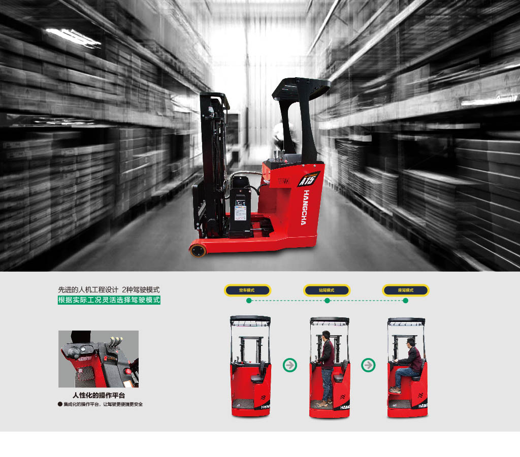● 根据人机工程学设计的操作手柄,前进后退无极调速,操纵自如 ●采用站驾与座驾双驾驶模式设计,用户可以自由选择驾乘模式。 ●采用高EPS电子转向,方便自如的掌控方向。 ●静音、无污染、节能等有点符合环保要求。 ●加宽的驾驶员操作空间,整体式仪表操作台,使得驾驶员手部和腿部空间更大。