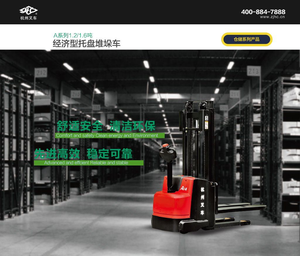 ● A系列经济型托盘堆垛车是杭叉针对仓储物流应用全新开发的新一代产品,采用最新的交流驱动控制技术,性能先进,操作舒适,安全可靠,使用维护成本低,是仓库、超市、车间内装卸和搬运托盘化货物的理想工具。