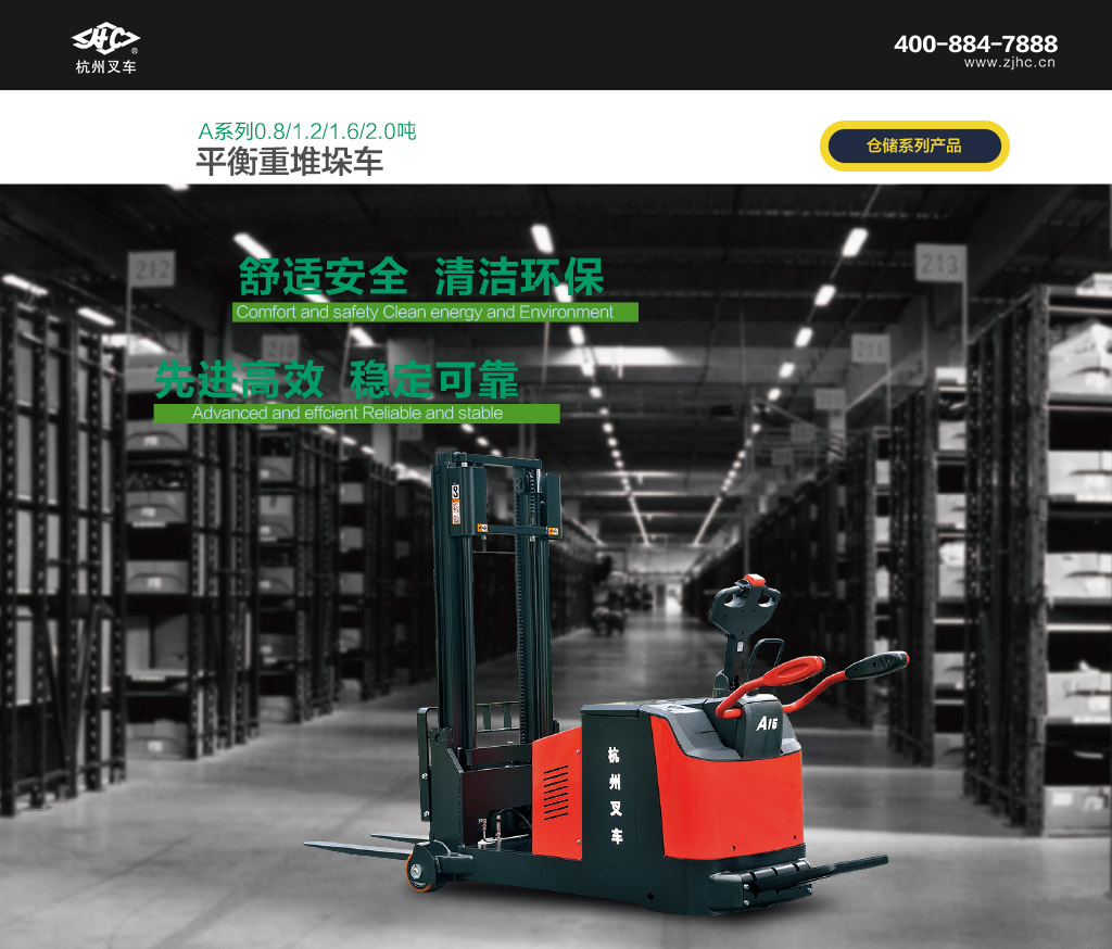 ● A系列平衡重堆垛车是A系列托盘车的车型之一,除在常规堆垛车能应用的所有场合外,还能在常规堆垛车无法使用的封闭式托盘、托盘离地高度很小以及货架底部无伸腿空间等场合发挥作用。整机采用最新的交流驱动控制技术,性能先进,操作舒适,安全可靠,使用维护成本低,是仓库、超市、车间内装卸和搬运托盘化货物的理想工具。