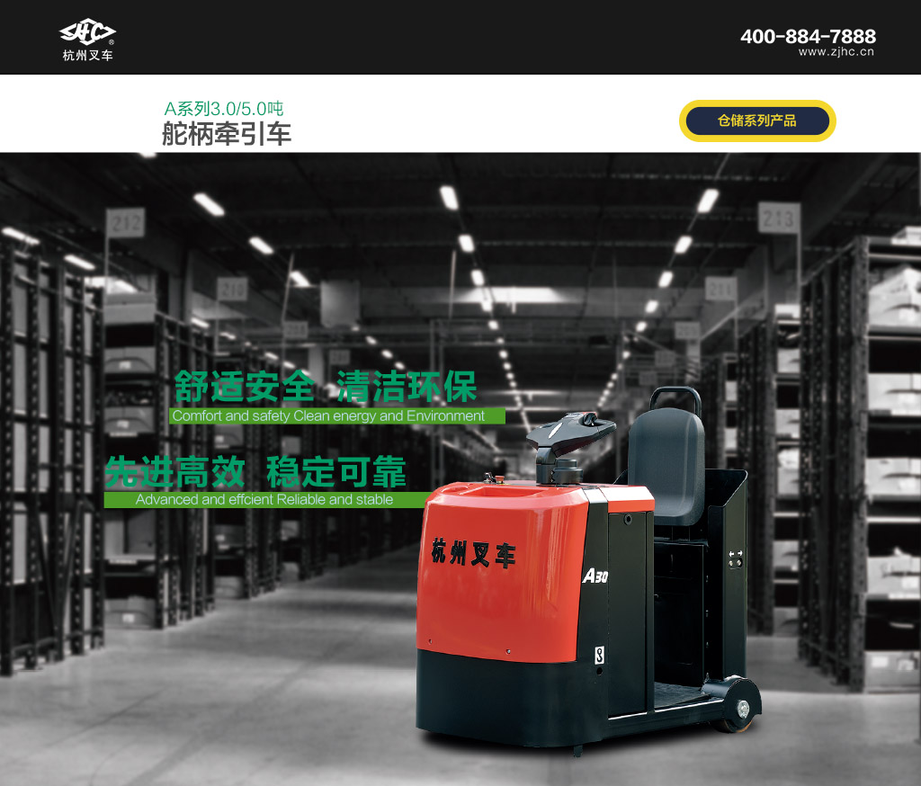 ● A系列3-5吨舵柄牵引车主要应用在企业车间内部的生产线的短距离物料牵引作业。这种场合往往需要频繁的上下车操作。舵柄式牵引车由于采用站驾式的操作方式,可以极大的提高作业的效率。此外由于是在室内作业,因此电动的驱动方式也极大的提高了车间内部的环境。因此本产品在汽车制造、物流公司、仓库等场所,领域均有广阔的应用前景。