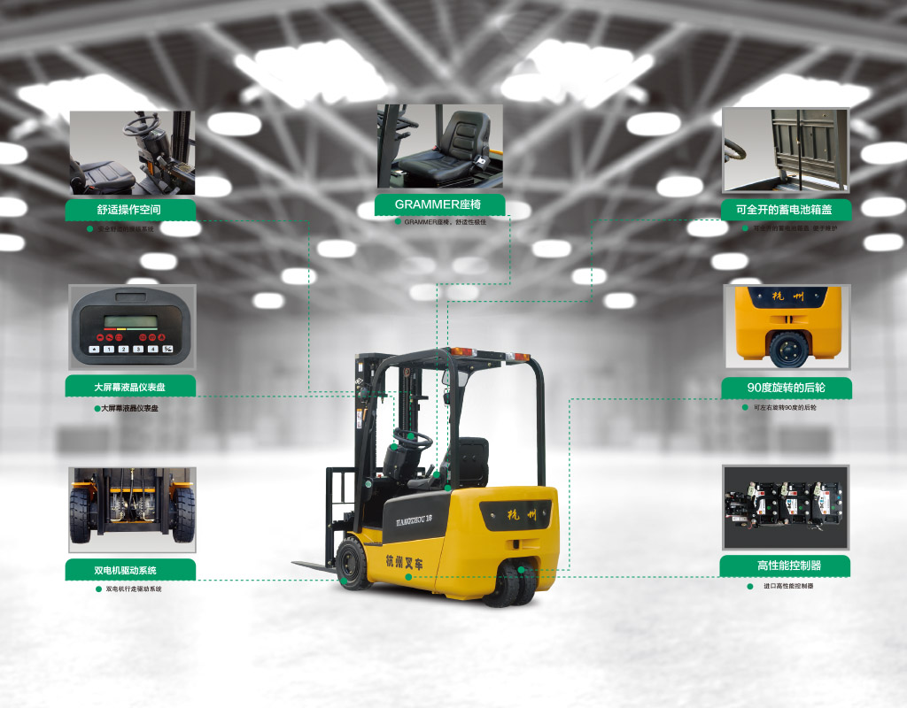 AC交流行走系统 前后实心轮胎 3m两级宽视野门架 高容量蓄电池 橡胶踏板垫