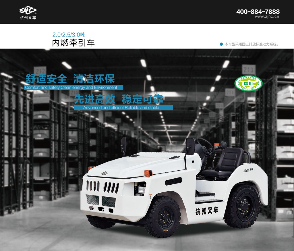 ●秉承安全可靠、舒适环保的设计理念, 2-3吨J系列内燃牵引车,通过全新设计使安全性、舒适性以及可靠性等得到全面改进,整车性能较原有产品有大幅提高。