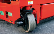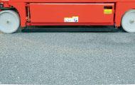 ● 防倾翻系统 平台起升后,防倾翻系统自动打开,防止平台通过坑洼路面时,因轮胎进入坑洞而倾倒