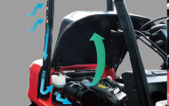 ●采用散热性能更强、结构强度更高的铝质板翅式散热器,独立油散,优化散热通道,双通风孔平衡重,大大改善冷却效率,提高了重载作业的可靠性,确保发动机可靠工作。