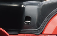 ●减少仪表架后倾角度,采用整体机罩,大幅提升脚下空间,护顶架前腿大圆弧,拓宽驾驶空间。