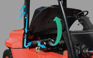 ●采用散热性能更强、结构强度更高的铝质板翅式散热器,独立油散,优化散热通道,双通风孔平衡重,大大改善冷却效率,提高了重载作业的可靠性,确保发动机可靠工作。
